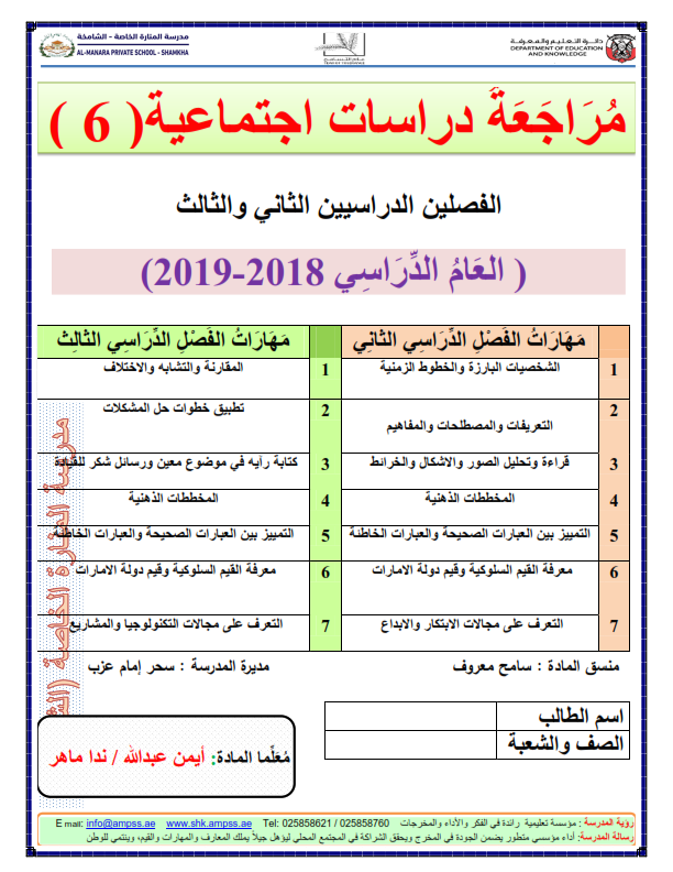 الدراسات الإجتماعية والتربية الوطنية أوراق عمل مراجعة للصف السادس