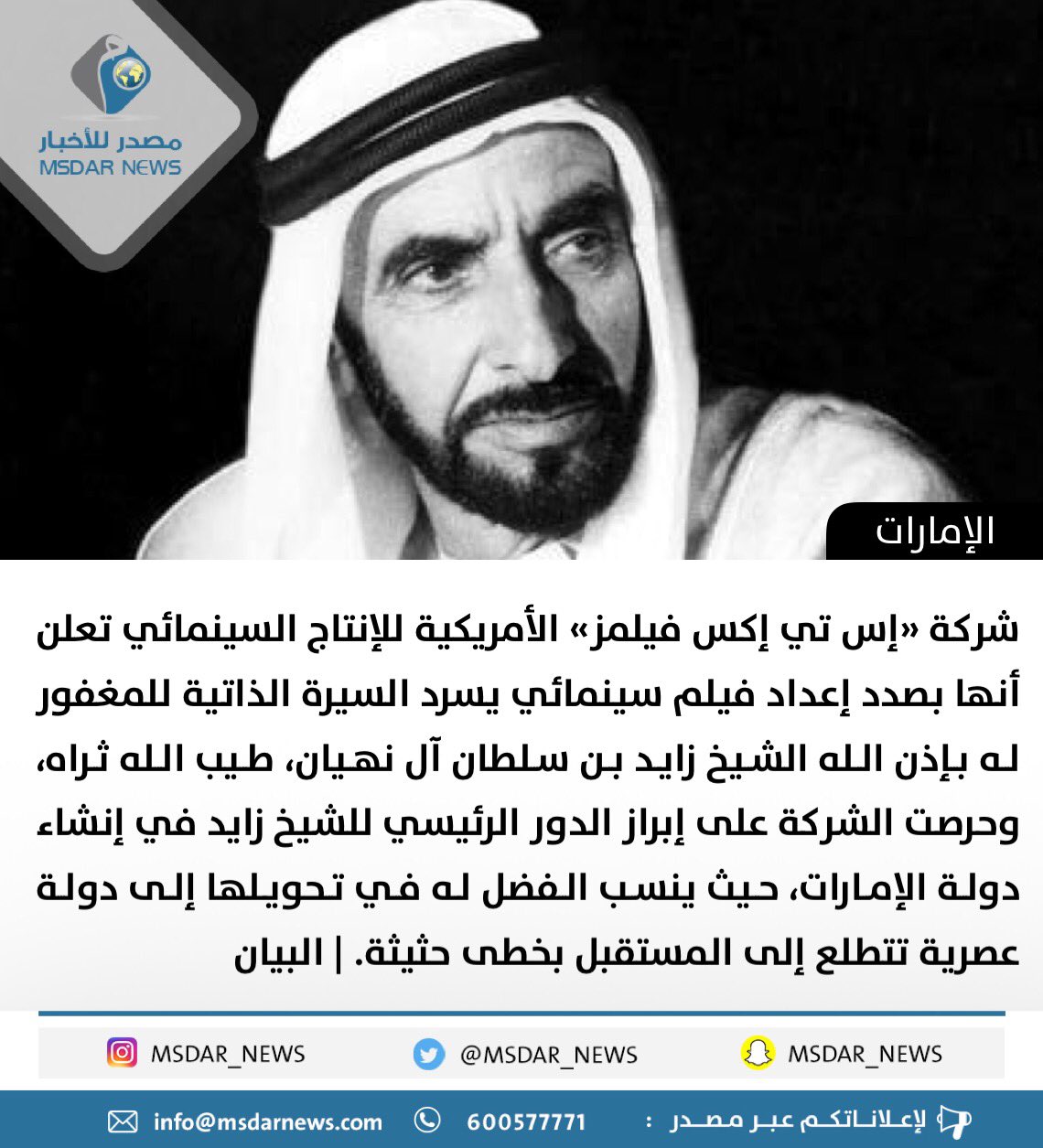 Twitter पर مصدر هوليوود تنتج فيلما عن حياة الشيخ زايد مصدر للأخبار