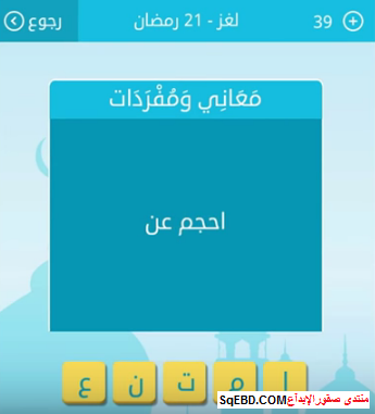 حل سؤال احجم عن 21 رمضان من لعبة رشفة رمضانية صقور الإبدآع