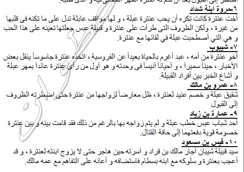 ثانوية عامة قصة عنترة بن شداد كاملة في اللغة العربية للصف الأول الثانوي الفصل الدراسي الأول 2016